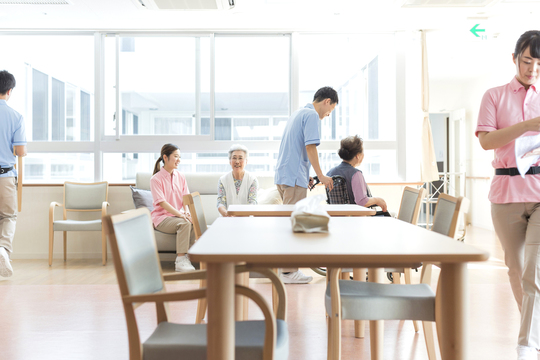 まるで自宅で生活をしているような、ゆったりくつろげる環境の中、日常生活や筋力維持のサポートを行います。
