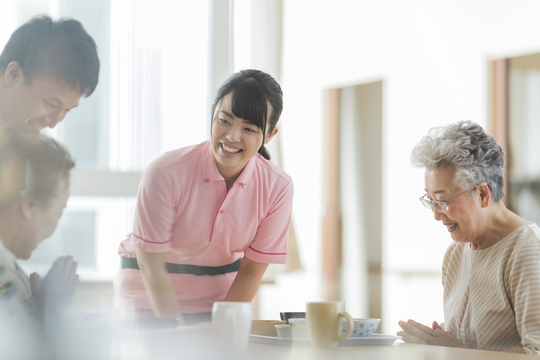 介護職員や看護師、生活相談員、機能訓練指導員などのスタッフが利用者さんのサポートを行います。